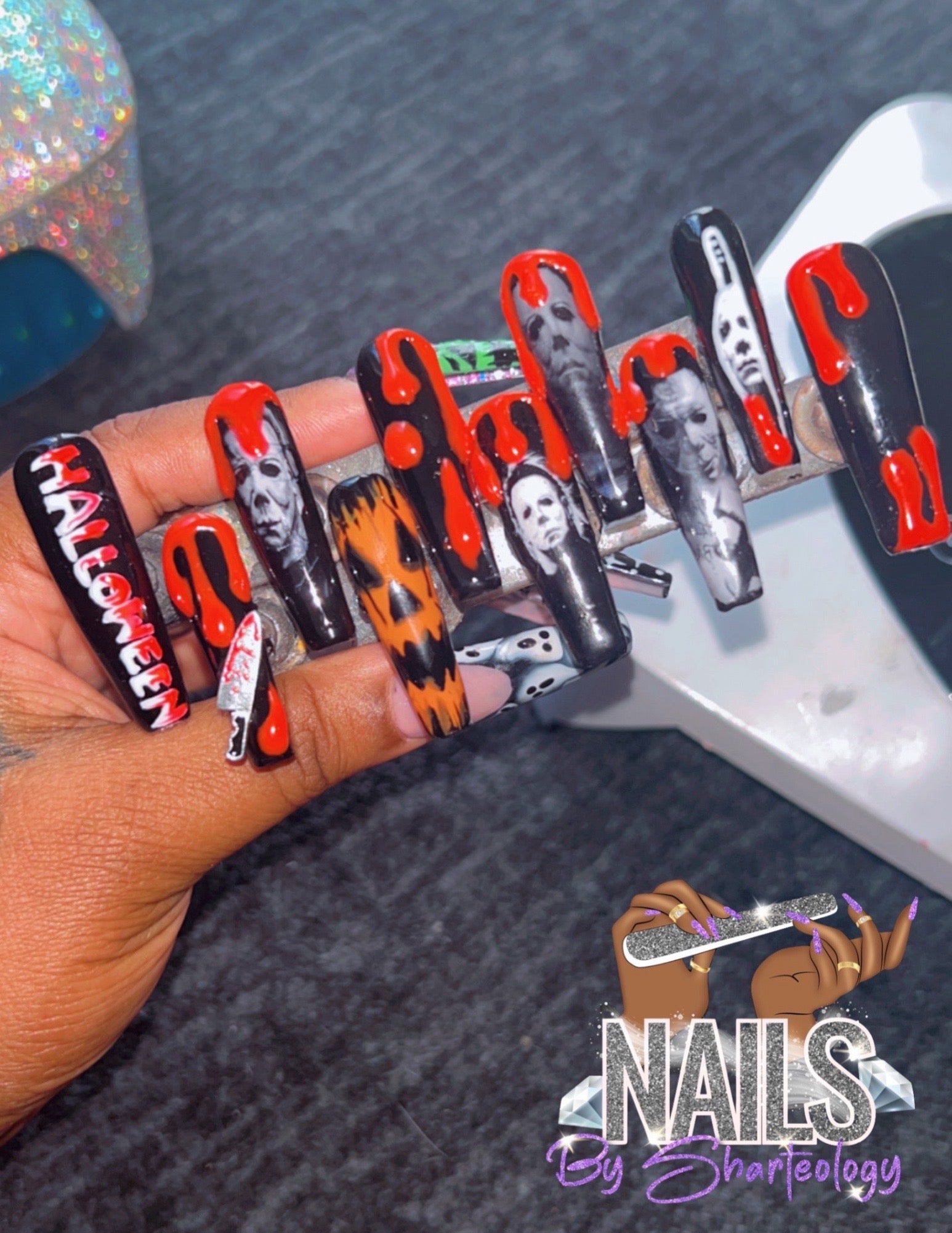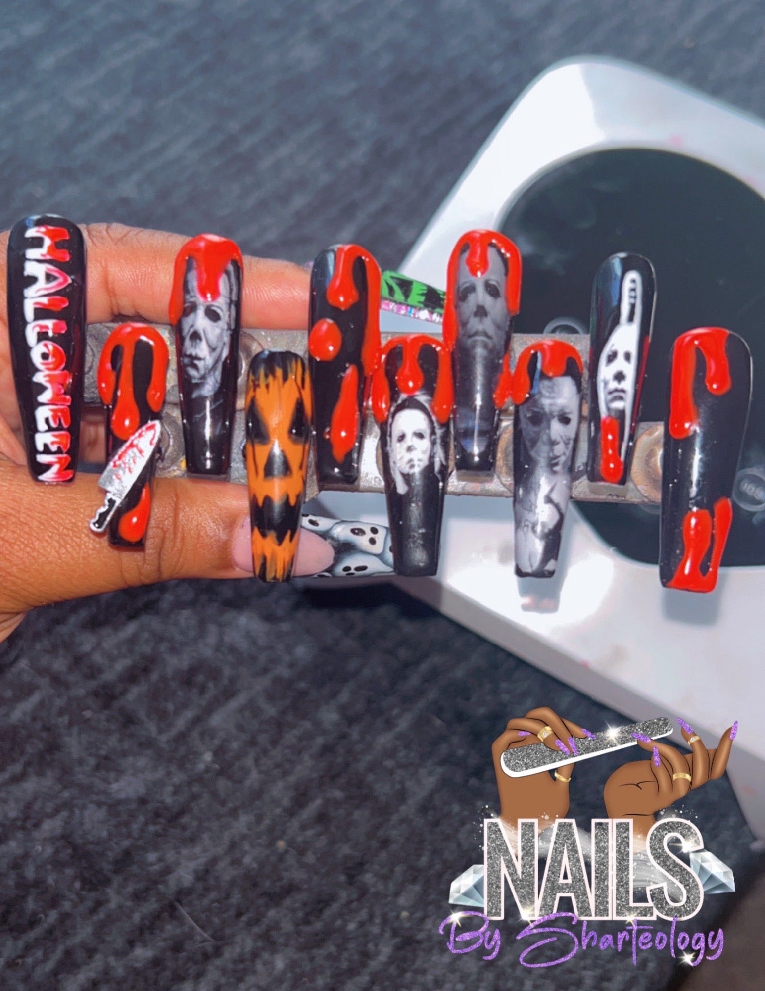 Made for medium nail sizes only. Micheal Myers nails for Halloweenย